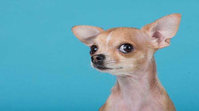 Funny portrait of a cute chihuahua dog at a blue backgroundBecause Chis are so fragile, they aren’t suitable for families with small kids. Keeping a Chi with a larger dog also poses issues, and not only because a bigger dog could easily hurt a Chi. These little dogs often aren’t fond of other canines and think nothing of challenging a big dog. The results aren’t pretty.