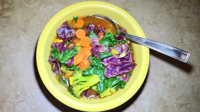 7. Bring to a boil, then reduce heat. Simmer for 15 minutes or until veggies are soft.