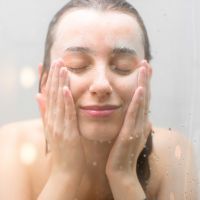 Woman washing face