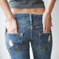 Woman wearing of jean pants, behind, Health concept.