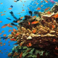 Fish on coral at Great Barrier Reef