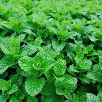 Dense mint plant growing at vegetable garden