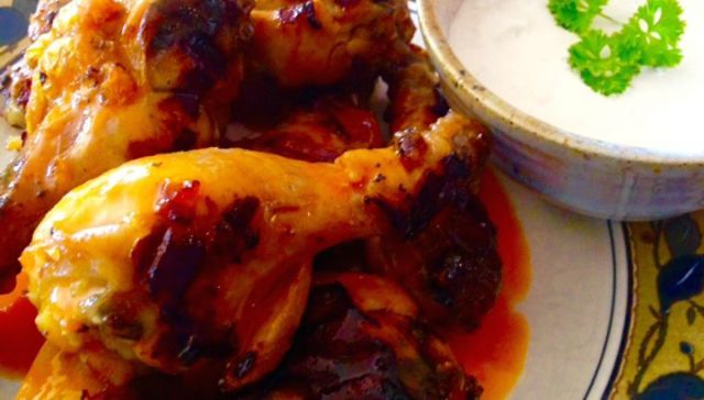 Buffalo Chicken Drumsticks With Blue Cheese Dipping Sauce