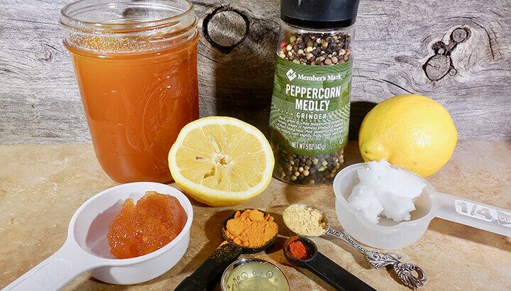 The ingredients in this pain relief tea are powerful. There are thousands of great studies on turmeric and the amazing benefits it can give the body. Turmeric has been shown to be effective in treating stomach ulcers, kidney inflammation, Crohn’s disease, osteoarthritis and more. Lemons can help flush away toxins and enhance immune health. Coconut oil is antibacterial, antiviral and antifungal to help prevent the spread of viruses. I could go on and on, but let’s try making this pain relief tea so you feel better!