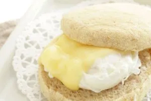 Toast the gluten-free English muffins to desired crispiness. Lightly coat pan with organic coconut oil. Whisk two eggs together in the pan and fry until done. Divide in half and top each half with a slice of organic cheese. Leave the mixture in the pan for 1-2 minutes to soften the cheese. Fold each half and place in between the English muffin halves.