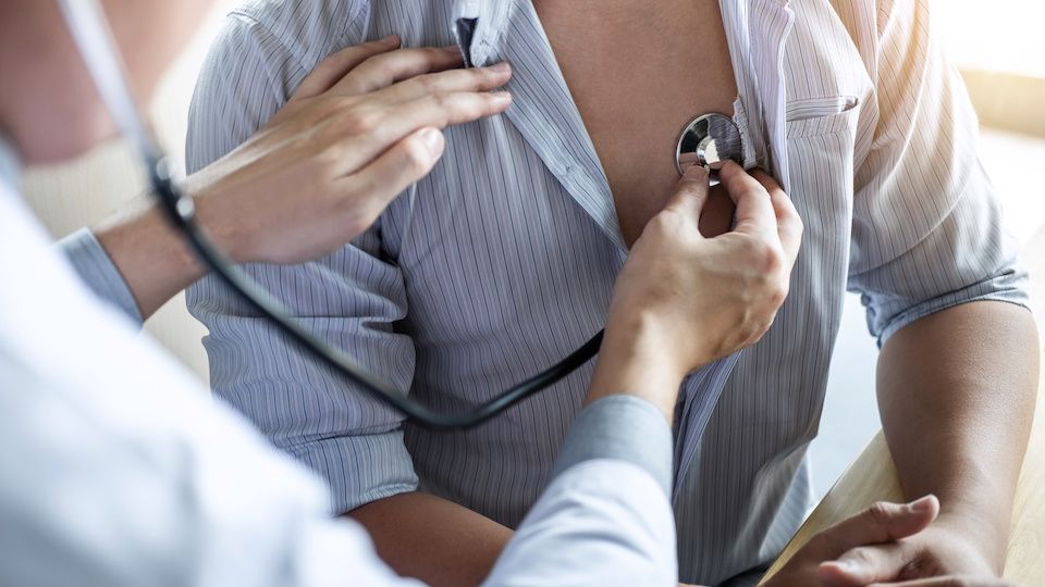 Doctor using a stethoscope checking patient with examining, presenting results symptom and recommend treatment method, Healthcare and medical concept