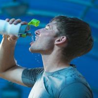 Athletic young man drinking water