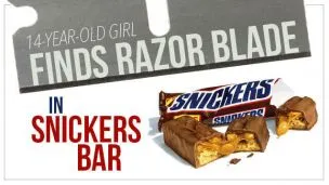 14-Year-Old Girl Finds Razor Blade in Snickers Bar