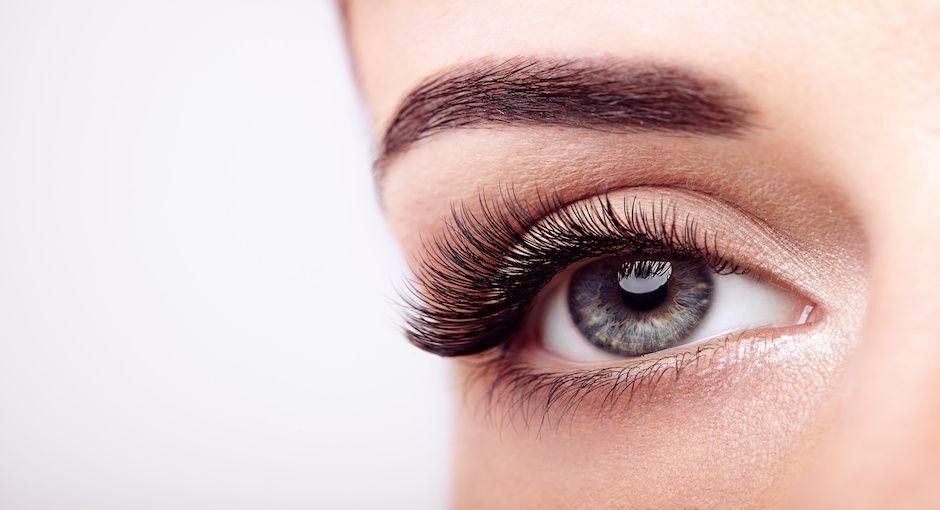 Female eye with long false eyelashes