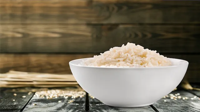Squeezing one-quarter of a lemon on rice as you cook it will help to whiten it, as well as provide a nice flavor.