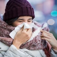 Woman blowing nose outdoor